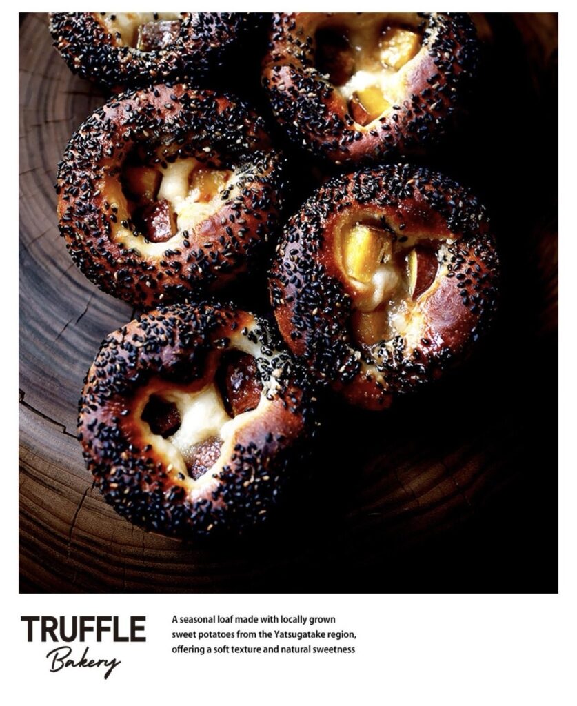 そんな「あけの金時芋」を、専用の生地に丁寧に包み込み、オーガニックシュガーとバターを加えたものをたっぷり生地の上に乗せ焼き上げました。バターは適量外側の生地に溢れ出るため、ところどころパンの表面がカリッと感じる食感もこの時代のおいしいの価値観なのではないかと思っております。
